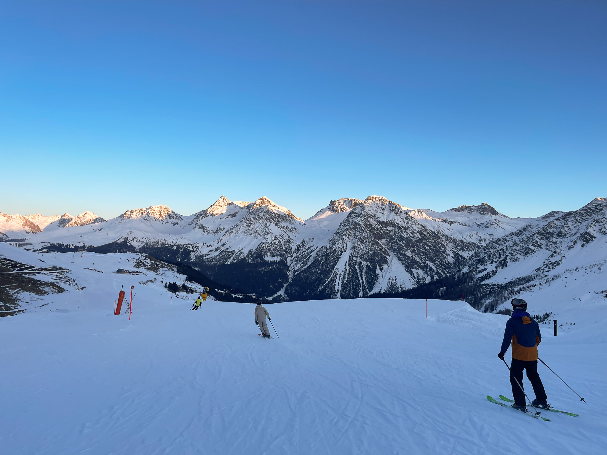 Am ersten Tag ging es direkt auf die Piste. Glücklicherweise schien die Sonne den ganzen Tag. Am Abend kehrten wir ins Hotel Astoria zurück, wo wir (wie schon vor zwei Jahren) ein grosszügiges Buffet genossen haben.